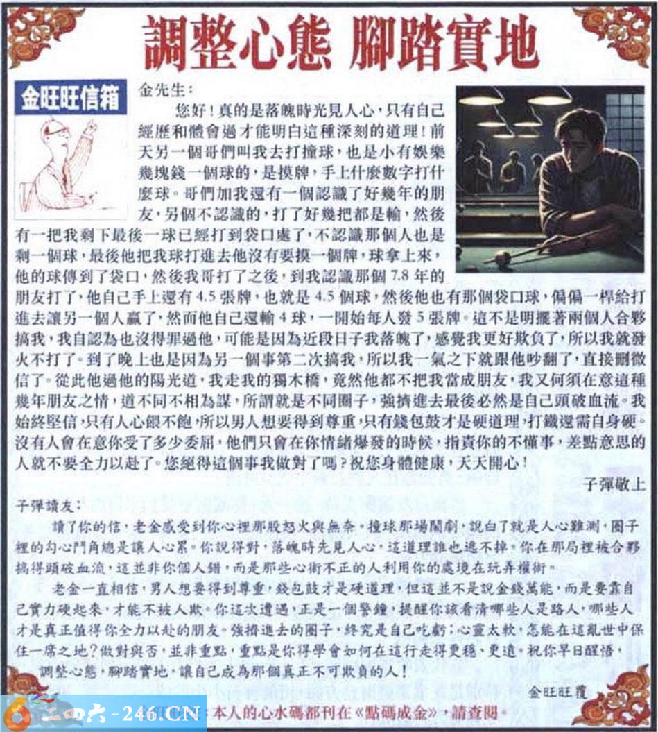 023期:金旺旺信箱彩民推荐→→《調整心態 腳踏實地》