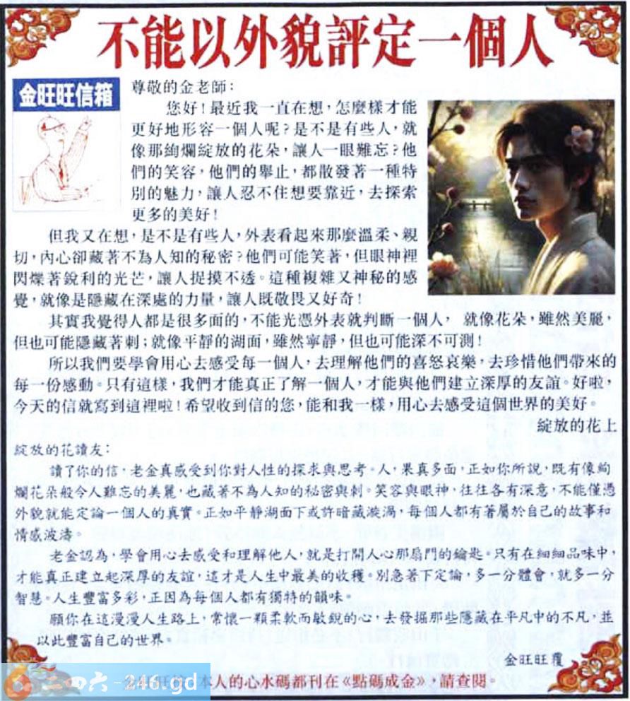 056期:金旺旺信箱彩民推荐→→《不能以外貌評定一個人》