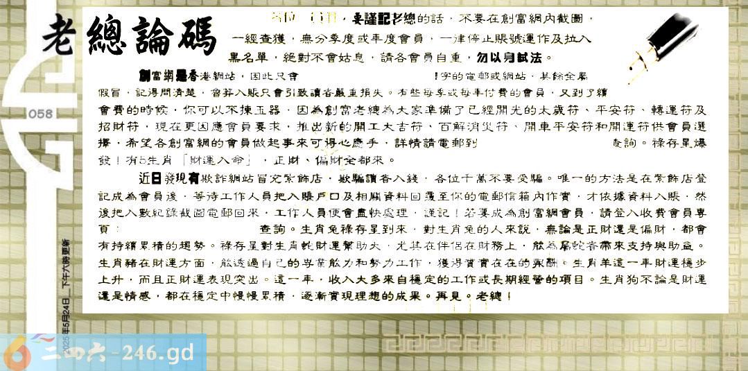 058期:六合皇金句/老总论码/萧公子/林大师/五行夺码/老总信箱截图
