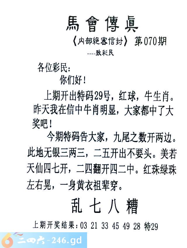 070期:首发推荐:≮馬會傳眞≯→(香港正版)