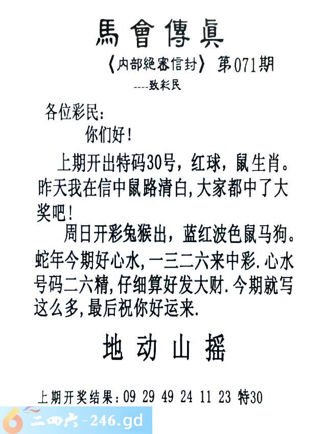 071期:首发推荐:≮馬會傳眞≯→(香港正版)
