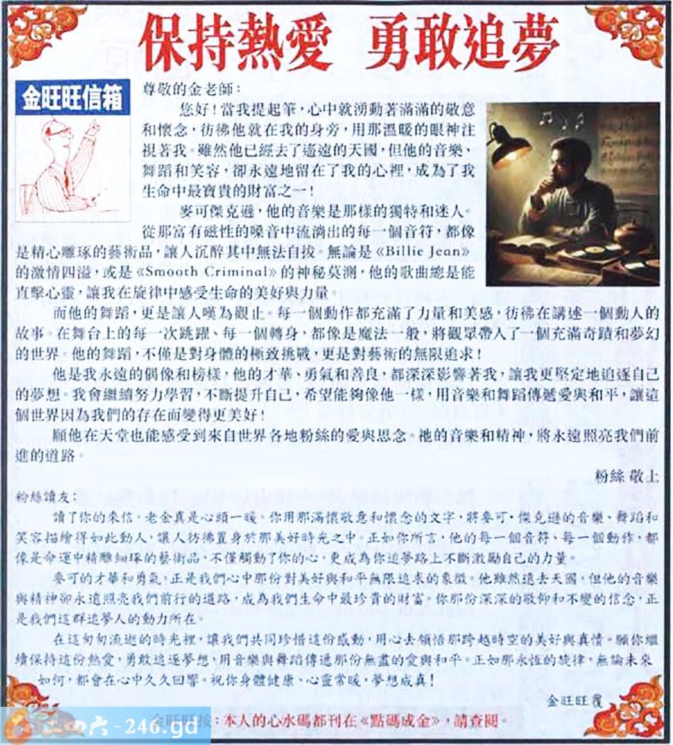 073期:金旺旺信箱彩民推荐→→《保持熱愛 勇敢追夢》