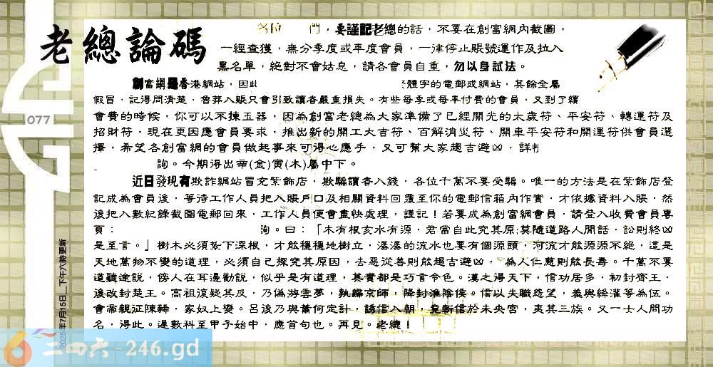 077期:六合皇金句/老总论码/萧公子/林大师/五行夺码/老总信箱截图
