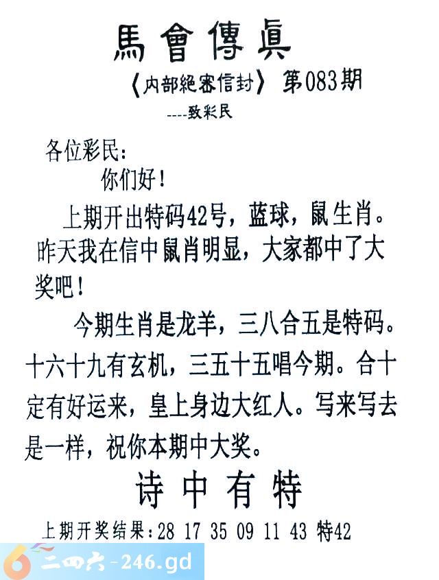 083期:首发推荐:≮馬會傳眞≯→(香港正版)