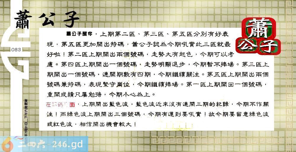 083期:六合皇金句/老总论码/萧公子/林大师/五行夺码/老总信箱截图