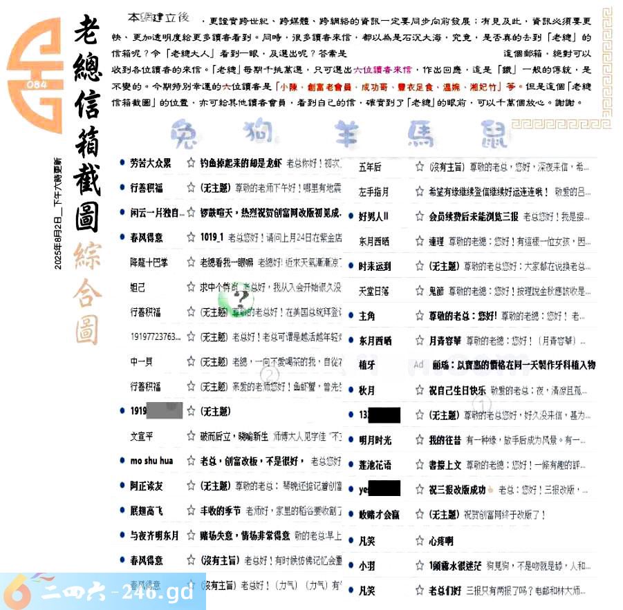 084期:六合皇金句/老总论码/萧公子/林大师/五行夺码/老总信箱截图