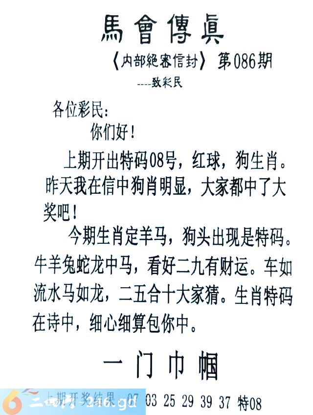 086期:首发推荐:≮馬會傳眞≯→(香港正版)