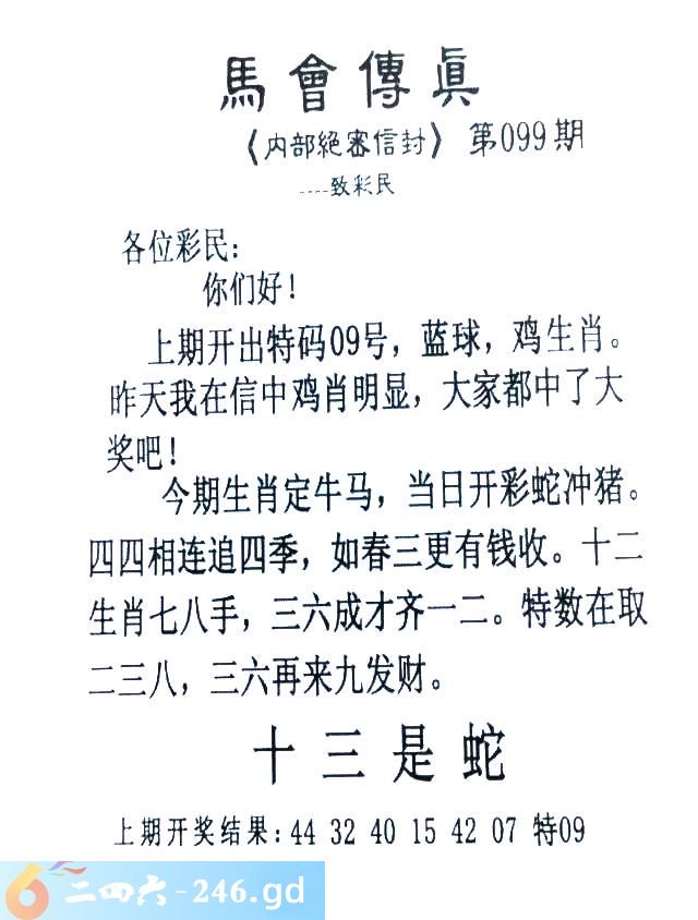 099期:首发推荐:≮馬會傳眞≯→(香港正版)