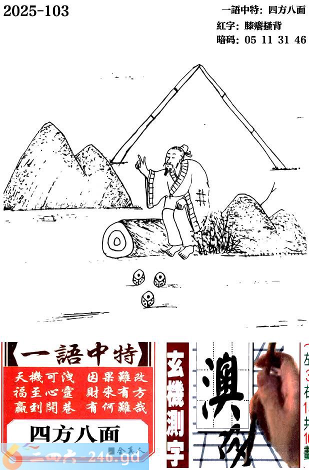 102期跑狗一字記之曰:【骰】 股子顯數,輸贏已出。 千金家產,今已耗幹。 玄機測字:《澳》 一語中特:四方八面