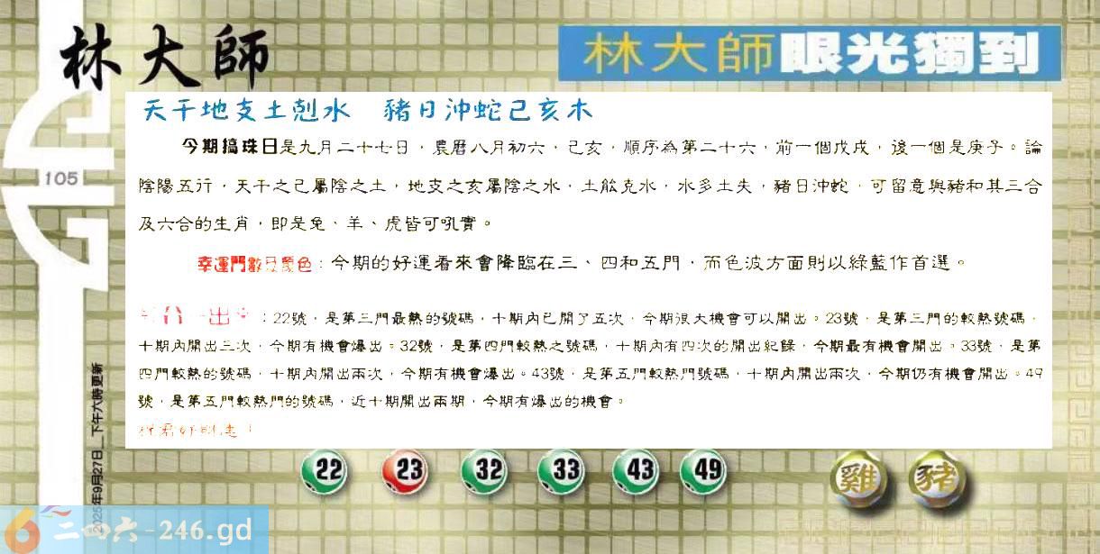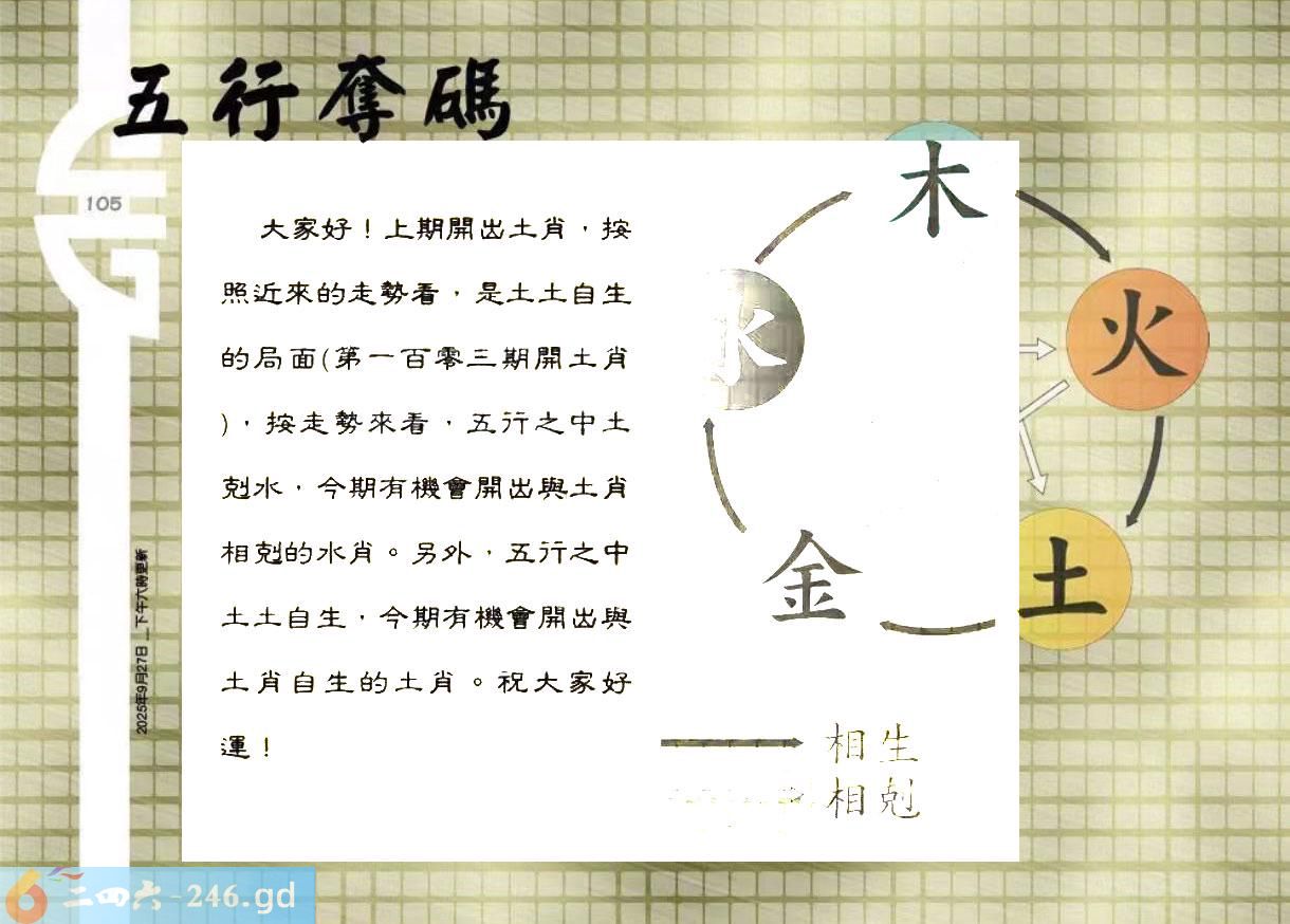 2025105期105期:彩民推荐六合皇信箱(紅字:望塵拜伏)