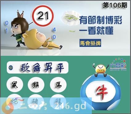 106期开奖时间2025年09月30(星期二)晚9:30开(农历八月初十虎冲猴) 生肖属性:壬寅日;五行属性:金;地支六冲:虎冲猴,无牛;六合:猪;三合:马狗。空亡肖:龙羊。 六合不出:猪虎龙;三合不出:羊狗兔;应开生肖:兔龙牛马鼠。防:羊虎 开奖日必开生肖虎日:蛇兔牛虎羊龙 开奖日日柱对应五行壬寅日:火水木 开奖日必开生肖壬寅:鼠马兔龙牛蛇 上期狗,必开:蛇虎马兔牛猪龙 《106期》《《香港掛牌之全篇》》 106期正版彩图挂:21爆:牛挂牌成语:歌舞升平挂牌出肖:鼠猴马蛇猪龙 [释义]指边歌边舞,庆祝太平,多指太平盛世。 106期另版香港马会挂牌:17马 106期马会挂牌33射0446 106期正版数码挂牌:38射:4107壹句真言:叹波幽栖载典籍(23679) 106期蓝天玄挂牌:01牛 106期四柱《树体触天字存身》 106期藏寶圖新:陌上最怜芳草色老:为问只今江海上禁:狗禁:2尾玄機字:《纬》 106期跑狗:【覓】碧波退盡,魚困淺灘。靜待遊鱗,覓跡求食。玄機測字:《綸》 106期香港关门联:隔三差五来出特,不中仙人中凡人。解[道][1273] 106期香港开门联:四举成名天下知,本期要钱看蓝红。解[玉][6748] 106期另香港关门联:老天偏重他人爱,不会稼稿欲何为解[绽][59362] 106期另香港开门联:欲钱请到红花楼,红马赤兔赠关公解[辉][40153] 106期内部万花来料:花开在举首翘项伸长舌,蓝红色彩尽显猴藏狗居 106期台湾玄门挂牌:[一方万金][138] 106期挂历诗:三哥今期可发财,三一四三可相连。 106期火车头:烧伤兔。诗:马死牛伤,二六花开好运来。 106期火烧图解:火烧“猪”。诗:原是三四五更时,得来三二更何方。 106期无字天书:一九加三得二特,七与五争三得利。蛇09 106期最老版无字天书:腾飞玄功莫藐视,确有三头与六臂。马08 106期九宫禁肖:鸡 106期必中人物:内史腾 106期二字经:沟槽 106期六合信箱紅字:颐精养神暗码:02223134 106期一語中特:五光十色 106期挂牌绝杀料/挂牌绝杀:鼠 106期正版黄大仙射箭图:36射1847 106期另版黄大仙射箭图:25射3304 106期香港牌:[鼠猴大旺][345] 106期内部运程曰:劲爆龙风。配密码:{461} 106期香港信封挂牌:宁知流寓变光辉(酉时上下)加2035 106期波段预测:01----2025--30 106期特码大小单双句:树体触天字存身解?? 106期特码大小单双句:顺下回头四随伴解?? 106期铁算盘:长江后浪推前浪(家家口题遍)开:? 106期香港版《香港六合天书挂牌》天书:龙虎定能爆本期,四六合五特马出。天码:03,15,22,27,32,36,42,48 106期(香港版)六合对联诗:横联:二九点头上联:一七大顺六来一下联:七就合三看六尾解:三。密码:48042 106期正版马会大门口挂牌一句话:本期三六连三八大数【挂10送03】开 106期另类马会大门口挂牌一句话:鼠猪羊龙君阳山【马会送24】开 106期香港生活开门联:三长两短相到转,二一做五时有数解[到][26549] 106期香港生活关门联:三五相加中奖来、一一得七开本期解[得][75342]