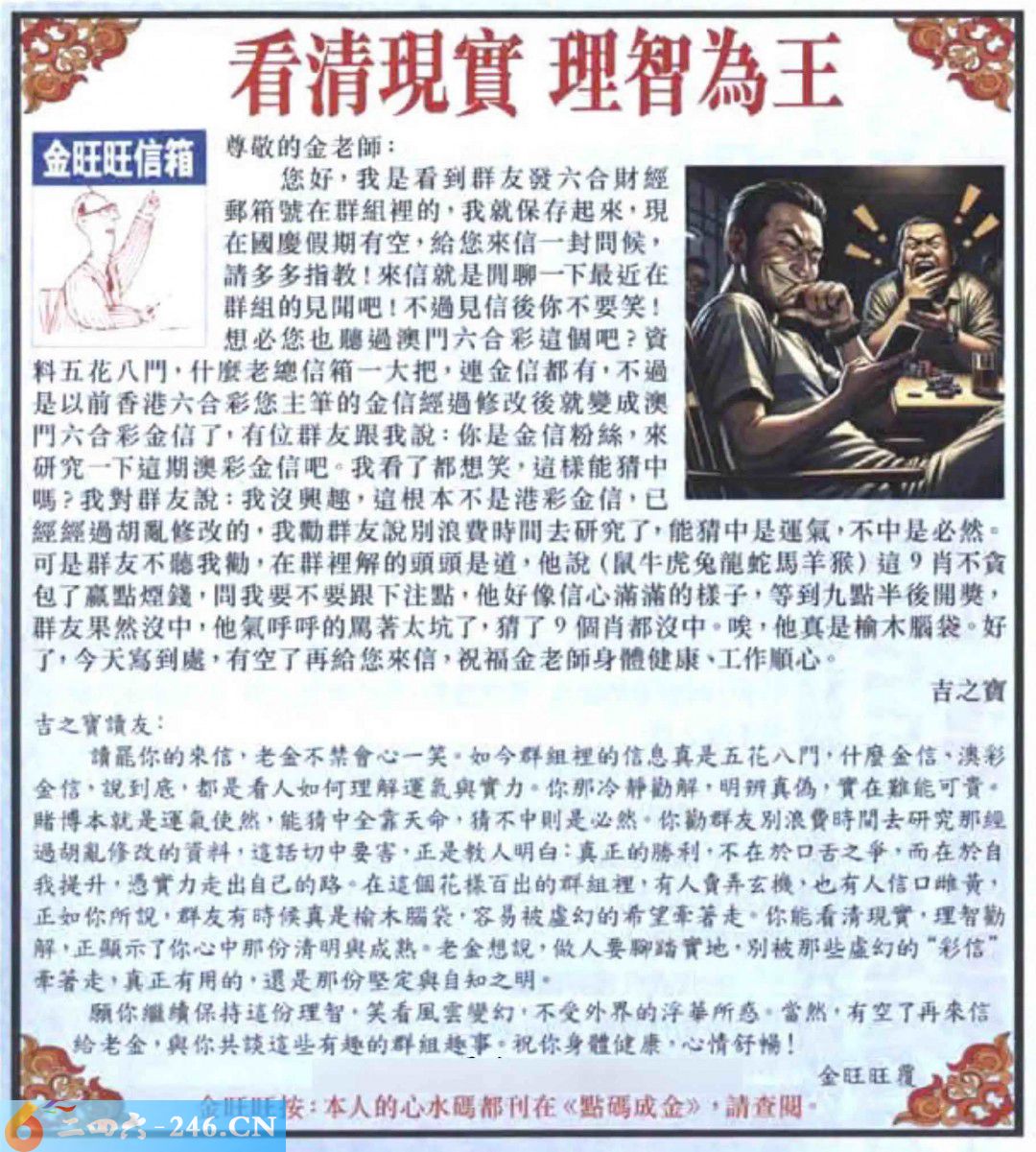 2025029期029期:金旺旺信箱彩民推荐→→《看清現實 理智為王》
