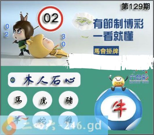 2025年129期正版彩图挂:02 爆:牛 挂牌成语:木人石心 挂牌出肖:马虎猪羊蛇鸡