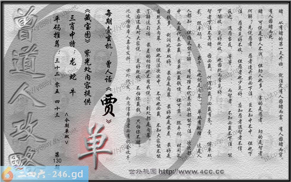 130期藏寶圖 新:最是城中闲静处 老:料峭轻寒结晚阴 禁:狗 禁:0尾 玄機字:《贾》