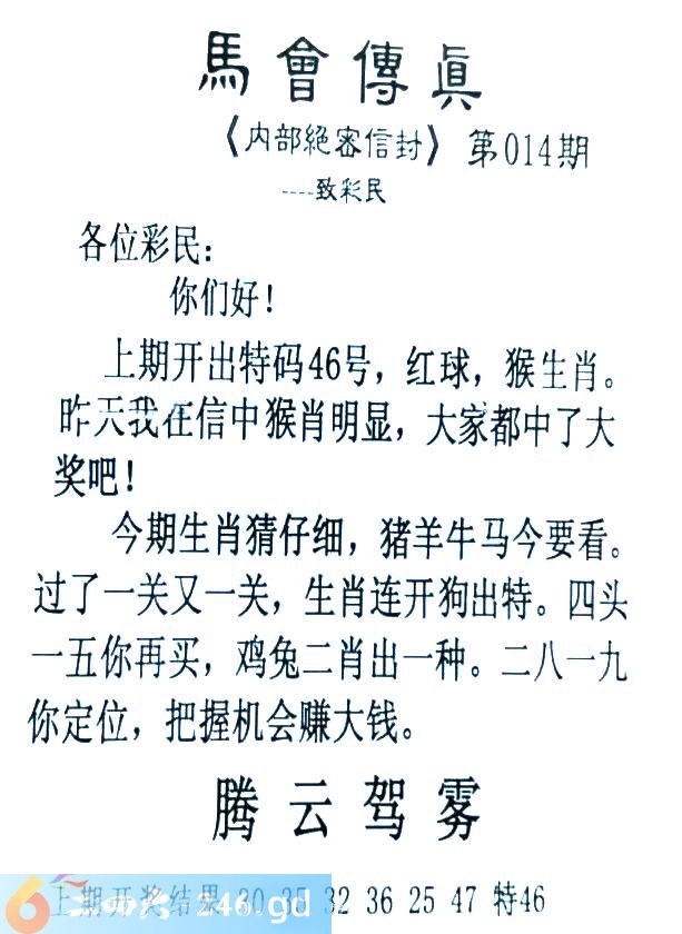 014期:首发推荐:≮馬會傳眞≯→(香港正版)