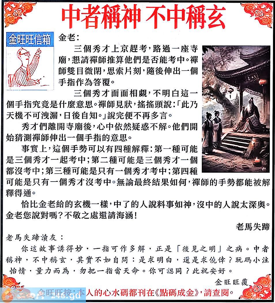022期:金旺旺信箱彩民推荐→→《中者稱神 不中稱玄》