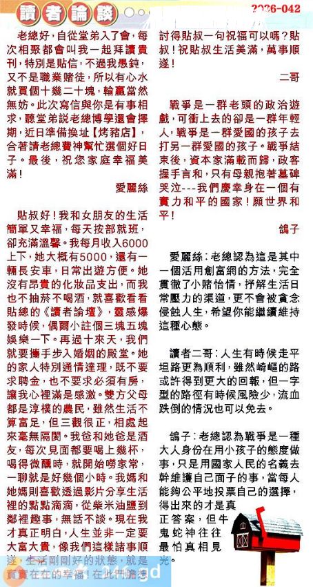 第零四二期讀者論談